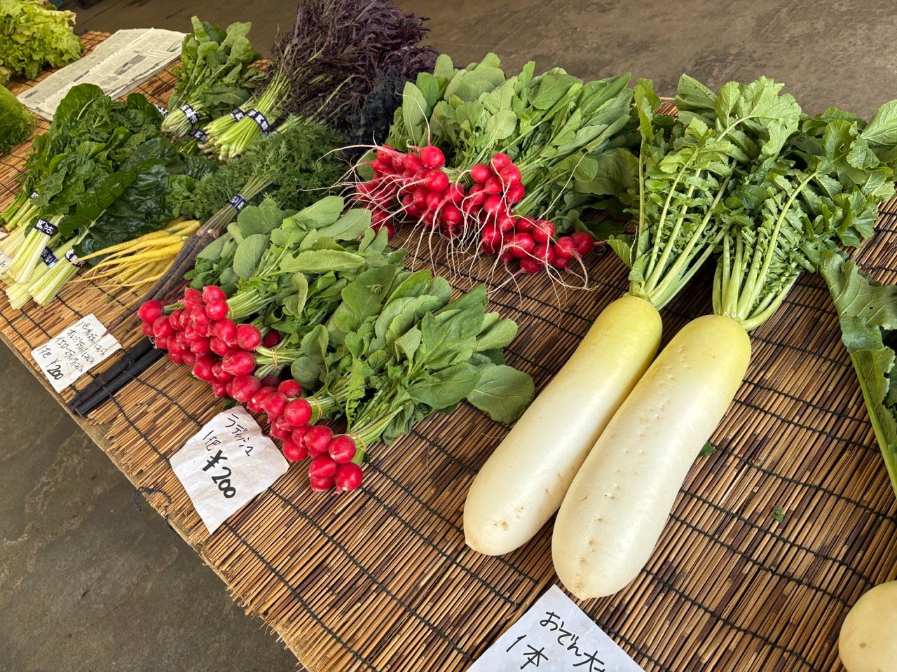 話を聞くと、基本的には前日に収穫したものだけを並べているらしく、見るからに新鮮。