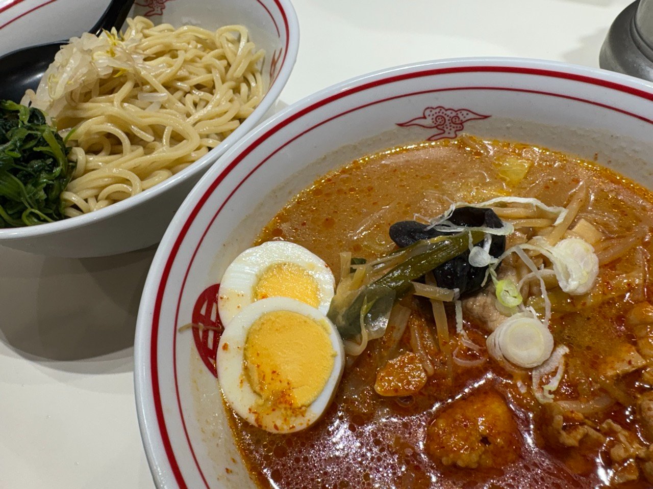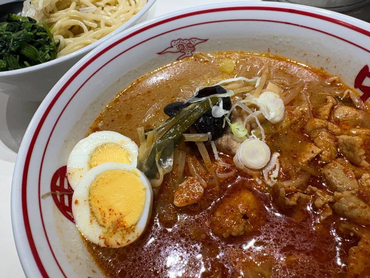 赤くない部分のスープに麺をつけて食べたときは、野菜の旨みが溶け出したスープともちもちの太麺に一瞬の幸せを感じました。その幸せも一瞬で、すぐに辛さを感じましたw